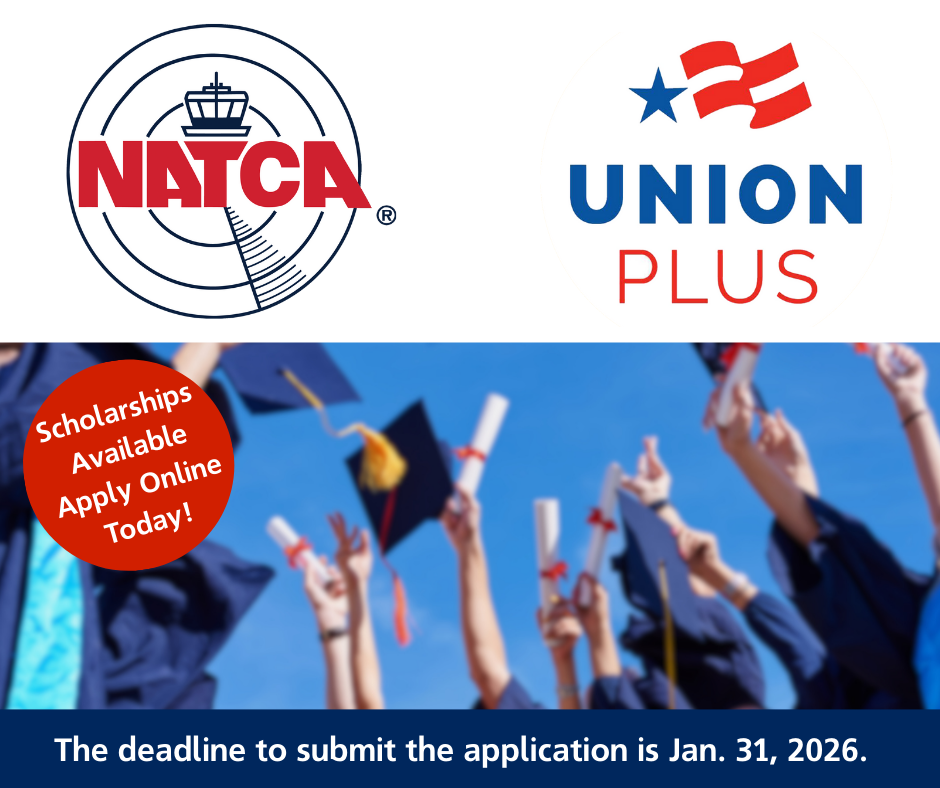 The NATCA Benefits Committee is proud to partner with Union Plus to offer savings and helpful programs to our Union’s members. Each year, Union Plus offers a scholarship to help union members and their families with the cost of college. They’ve provided over $5.4 million in scholarship funds to date. The online application is now open. The deadline to submit an application is Jan. 31, 2026. For more information on eligibility requirements and to apply, visit the Union Plus website.