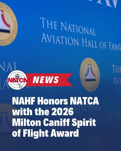 NATCA is excited to share that we’ve been selected by the National Aviation Hall of Fame (NAHF) as the 2026 recipient of the 2026 Milton Caniff Spirit of Flight Award. The Spirit of Flight Award is presented annually to an aerospace organization that utilizes its resources for charitable purposes, or in service to all.