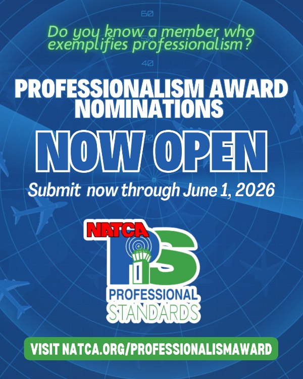 Do you know a fellow NATCA member who consistently demonstrates professionalism and sets a positive example for others? Nominate them for the 2026 Professionalism Award. Submissions are open through June 1, 2026. This award will be presented at Communicating for Safety (CFS). Submitting a […]