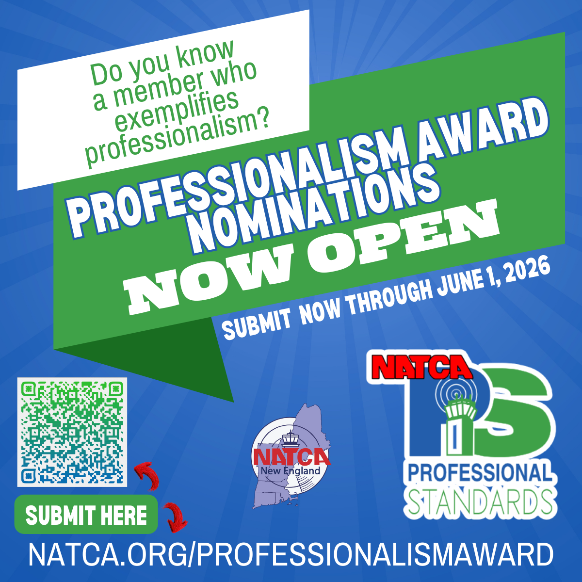 Do you know a fellow NATCA member who consistently demonstrates professionalism and sets a positive example for others? Nominate them for the 2026 Professionalism Award. Submissions are open through June 1, 2026. This award will be presented at Communicating for Safety (CFS). Submitting a […]