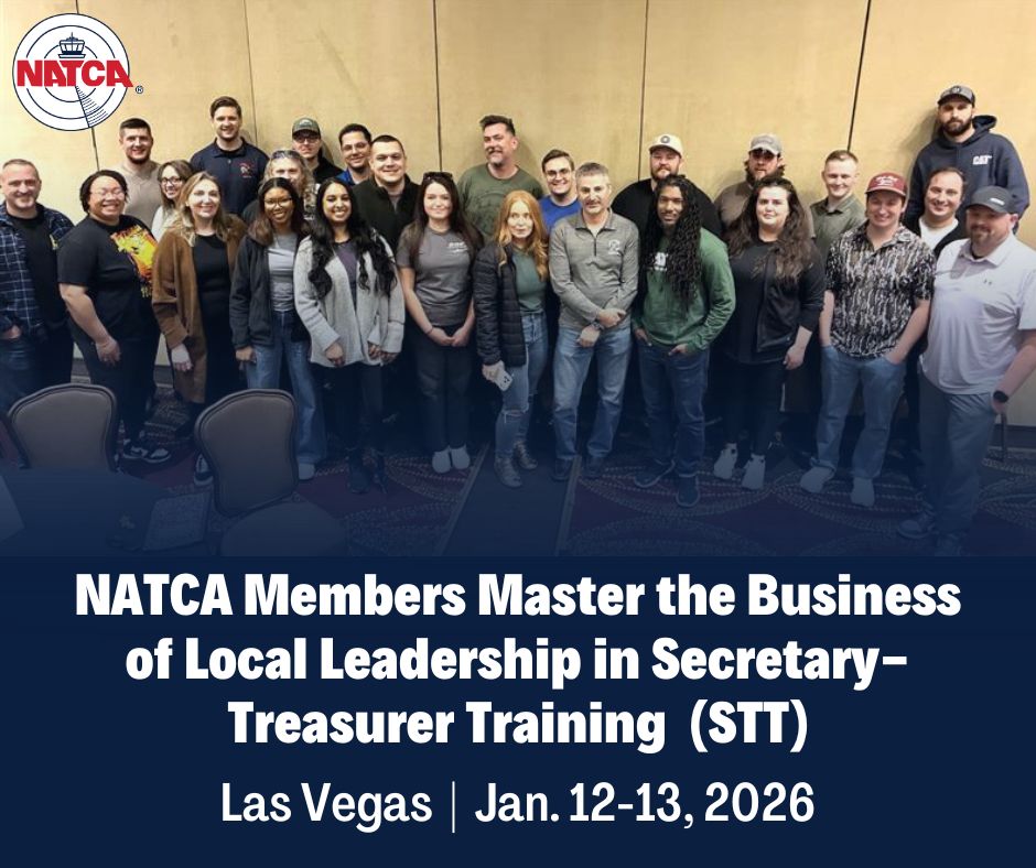 Nine NATCA members recently completed the OSHA/OWCP Training course. The two-day course took place in Las Vegas on Dec. 16-17, 2025. NATCA Great Lakes Region OSHA Representative Xavier Rivera (Indianapolis Center, ZID) and NATCA Southern Region […]