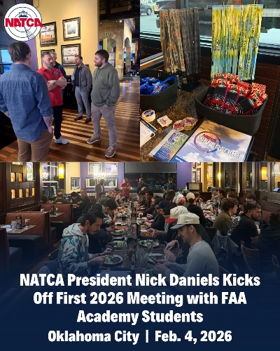 NATCA President Nick Daniels held the first Meet and Greet of 2026 with FAA Academy students in Oklahoma City on Wednesday, Feb. 4, 2026. Daniels was joined by New England Regional Vice President Kevin Curtiss, National Training Representative Jamaal Haltom (Las […]