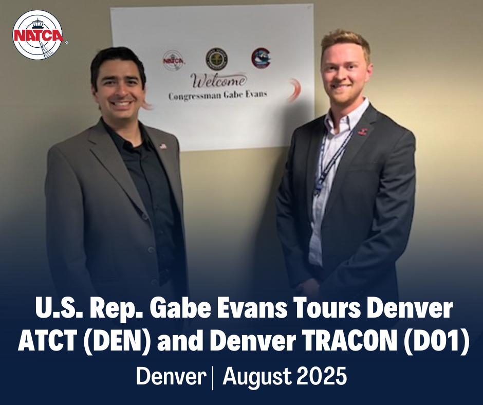 NATCA Colorado State Legislative Coordinator Brian Nelson (Denver TRACON, D01) and NATCA member Matt Scala (D01) recently met with Senator John Hickenlooper (Colo.), discussing the Mental Health in Aviation Act, which Sen. Hickenlooper has sponsored. Sen. Hickenlooper also discussed his insight into stable funding for air traffic […]
