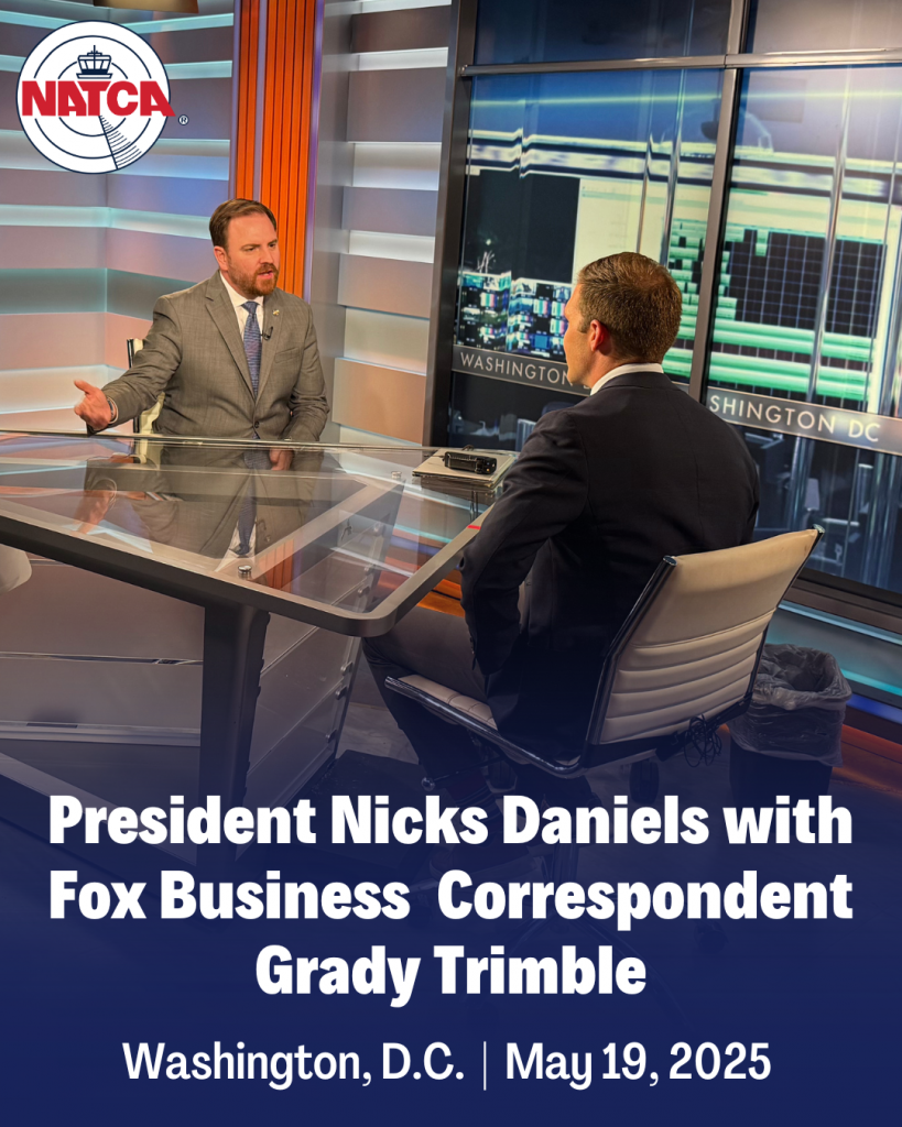 In his interview on Fox & Friends on Tues., May 20, Daniels described how NATCA is working with the Trump Administration, Transportation Secretary Sean Duffy, Congress, and a coalition of aviation stakeholders to maintain safety and modernize our air traffic control system.