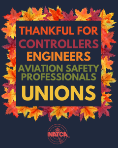 For Thanksgiving, we share our gratitude for our Union brothers and sisters for your incredible solidarity. NATCA thanks you for your commitment and dedication to your local, region, and national union. Your hard work keeps our great nation moving and ensures the record number of Americans traveling this week for the Thanksgiving holiday arrive safely…