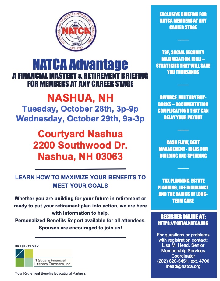 The NATCA Benefits Committee is proud to announce that our Union is partnering with National University (NU) to offer a tuition reduction of up to 25%* to our members, employees, and retirees for associate, undergraduate, and […]