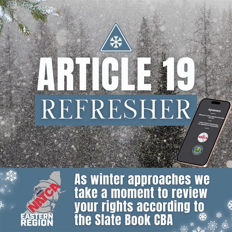 Hazardous weather can happen on any day at any time of the year, but the occurrence of phenomena in the Eastern Region increases during Winter. This edition of #NATCA Eastern Region Contract Corner dives into Article […]